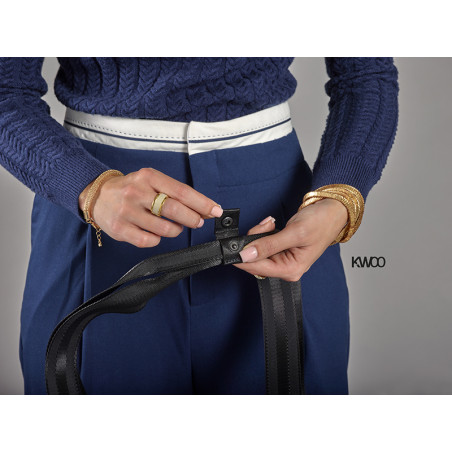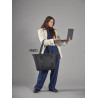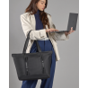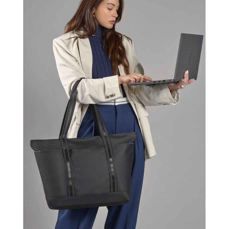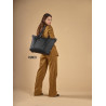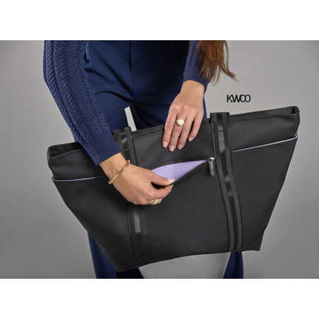 Large handbag with interior storage compartments. Zippered exterior pocket and 4 exterior compartments.