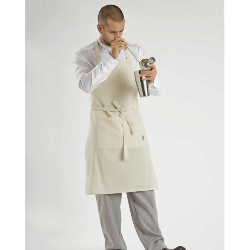 Apron in recycled cotton with one front pocket