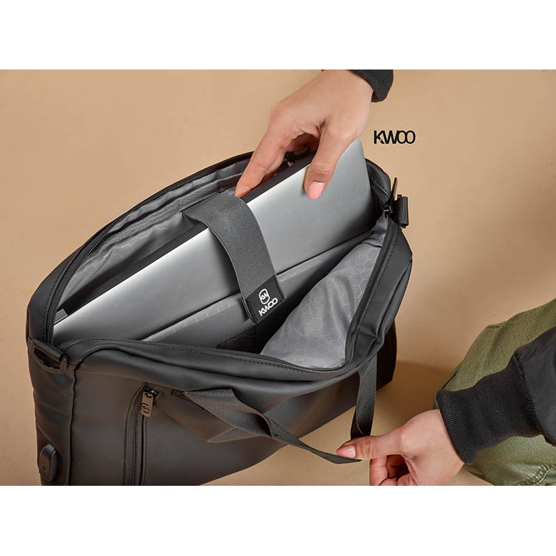Sacoche porte ordinateur avec compartiment de rangement et une poche extérieure. Port USB-C.