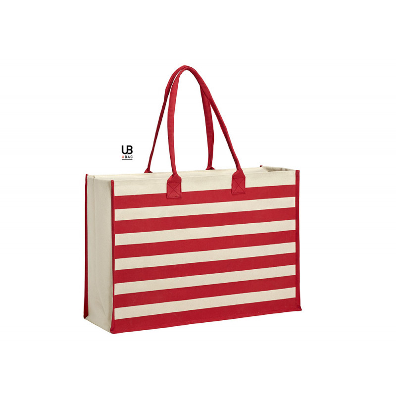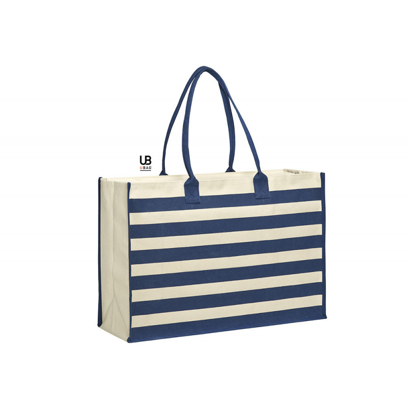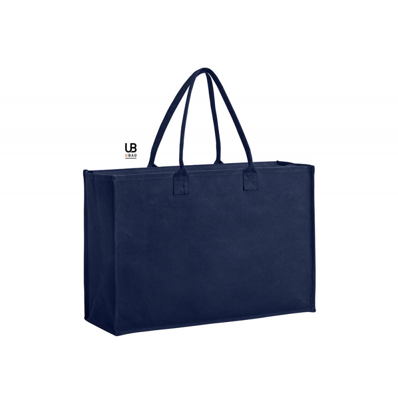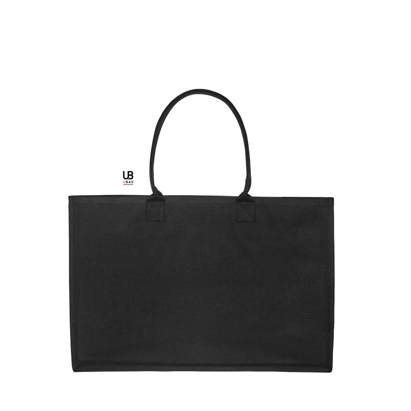 Sac shopping zippé en coton canvas laminé avec fond rigide amovible 340grs