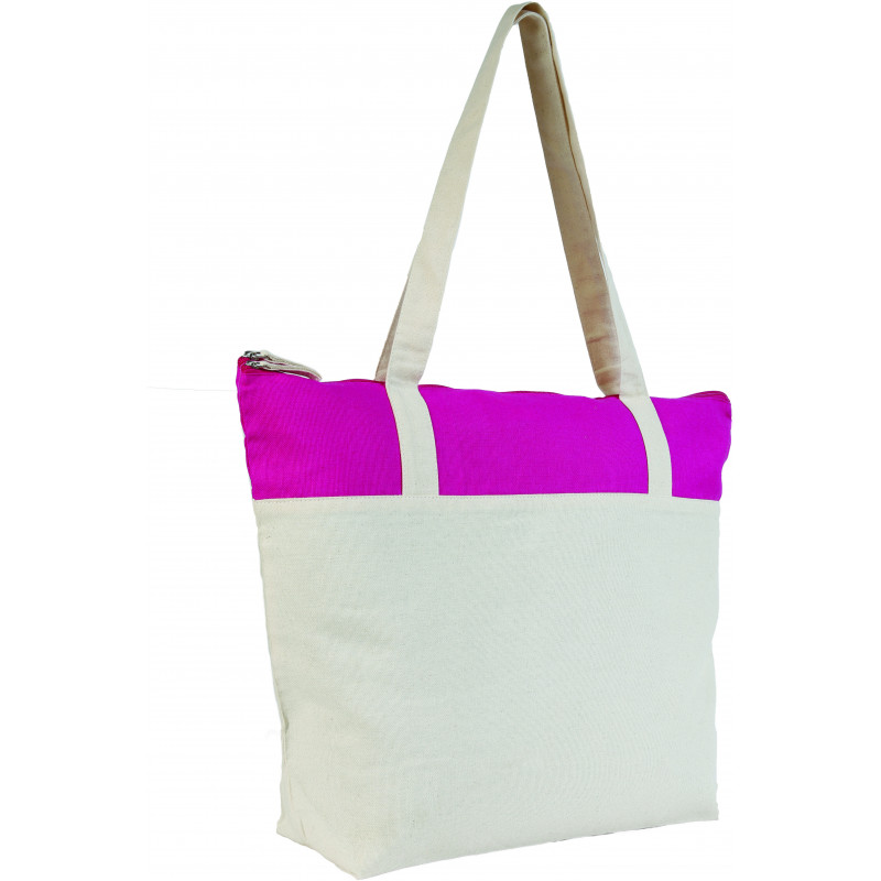 Tote bag coton 220grs zippé et contrasté avec poche interieure