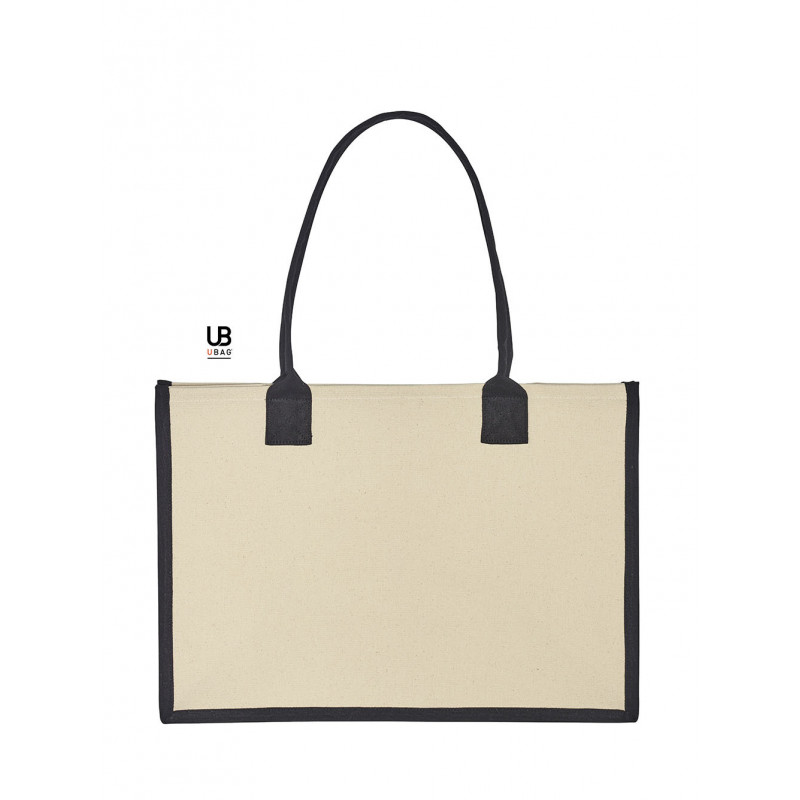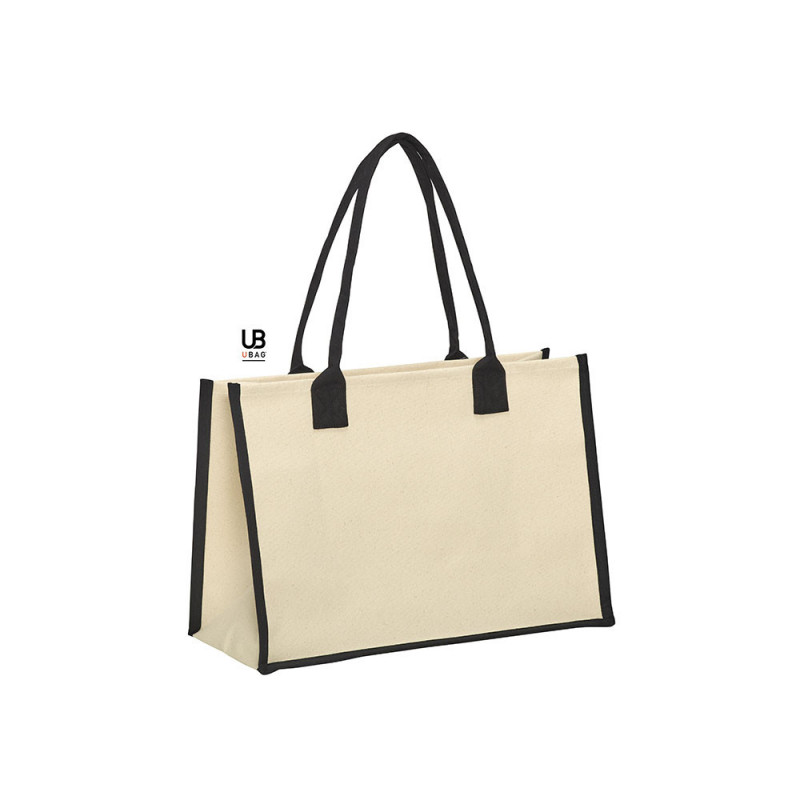 Sac shopping en coton canvas laminé avec fond rigide amovible 340grs