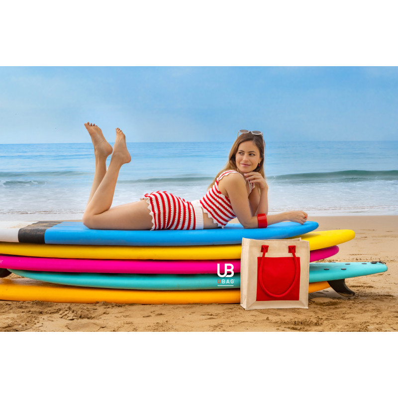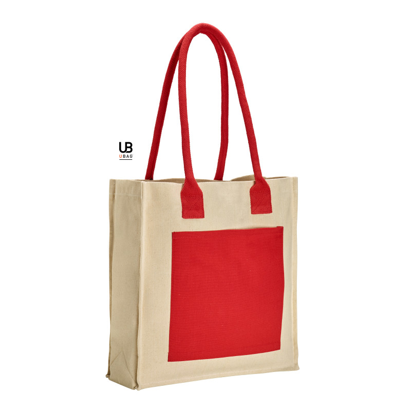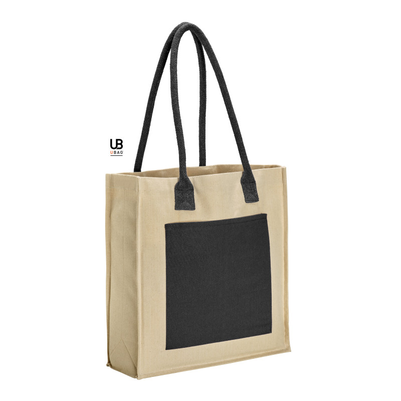 Tote bag avec soufflets. Poche intérieure zippée, poche extérieure et anses assorties